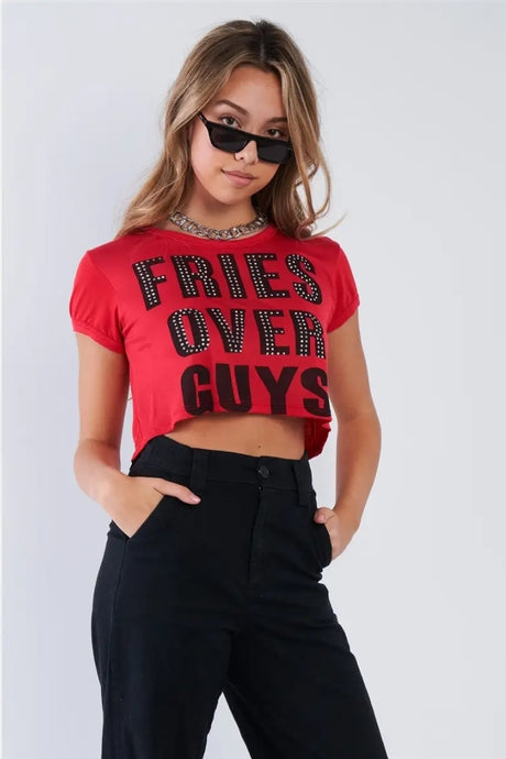 Fries Over Guy Graphic Studs Detail Crop Top